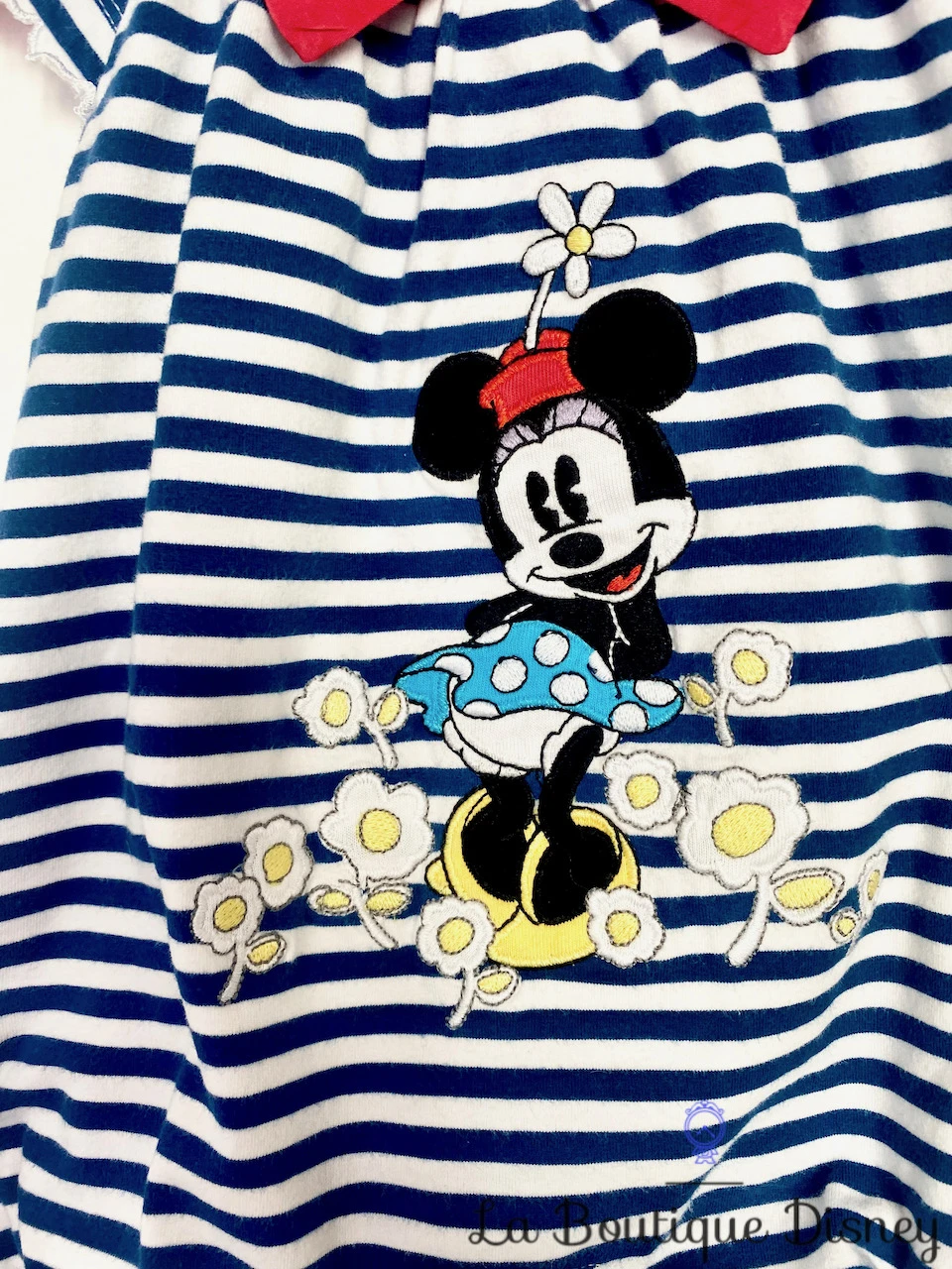 Body Combinaison Minnie Mouse Disney Store Taille 3-6 Mois Rayures Marin Fleurs