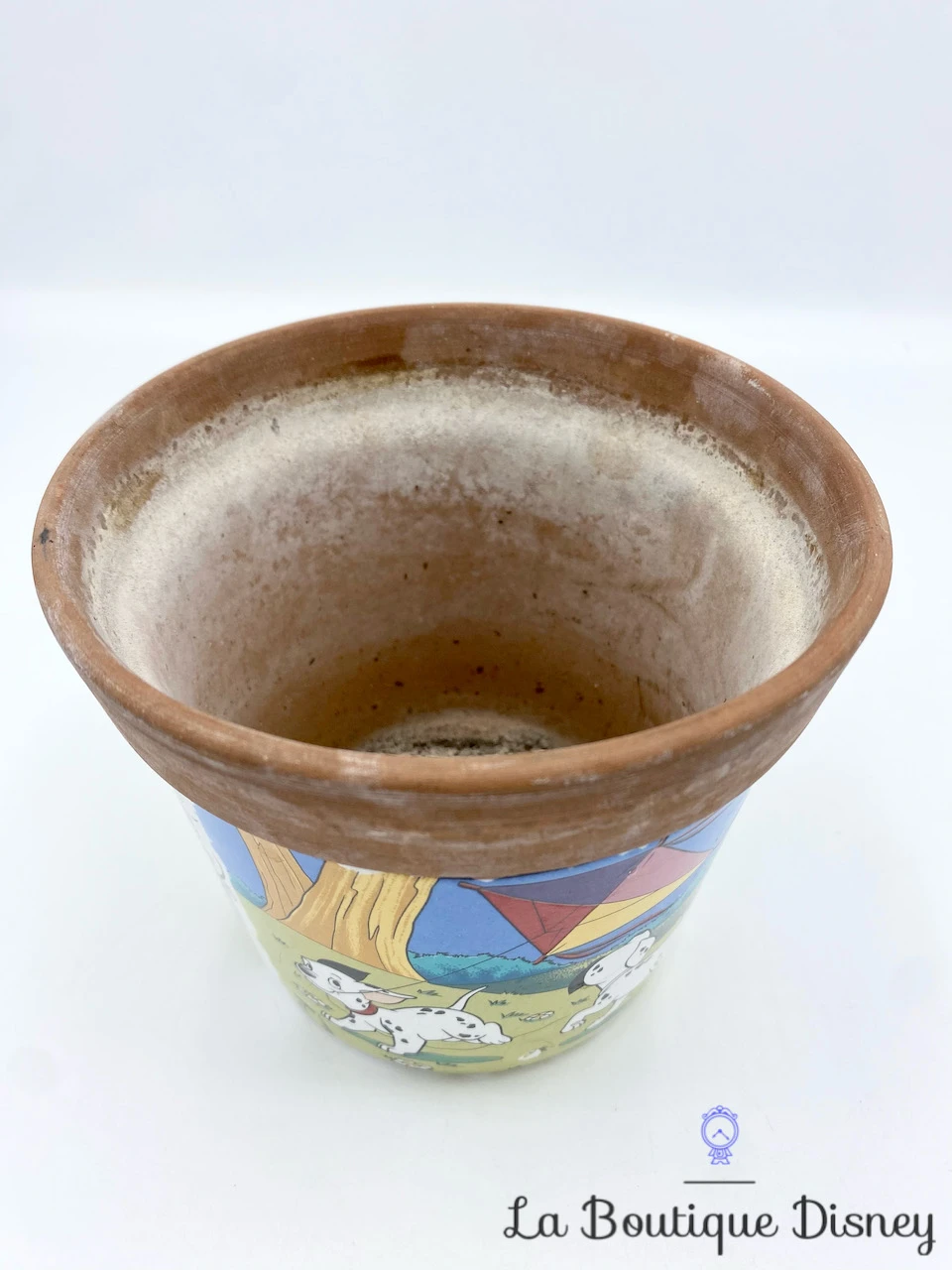 Cache pot vintage pour sublimer vos fleurs ! Tout autour, il y a de l’herme avec les chiots qui courrent et jouent avec des cerfs-volants. Bande blanche « Walt Disney ».