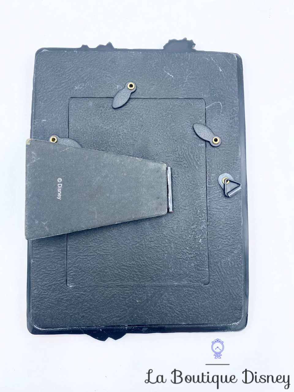 Cadre en plastique souple rouge avec représentantion en léger relief 3D de Stitch, le petit extraterrestre bleu en train de jouer de la guitare en compagnie de son amie Lilo en tenue d’hawaïenne. Il y a des fleurs tout autour du cadre. Prévu pour être posé grâce à un chevalet à l’arrière.