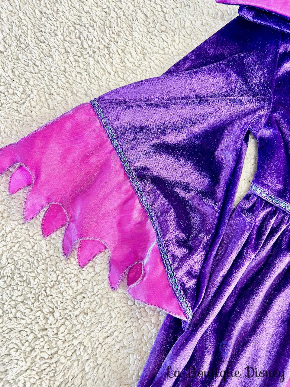 Robe en velours violet et rose fushia de Maléfique avec un très bel effet brillant. Manches larges avec effet déchiré. Ouverture sur le devant grâce à une fermeture éclair. Très grand col qui peut se porter bas ou relevé. Prêt à devenir votre Villain Disney préféré ?
