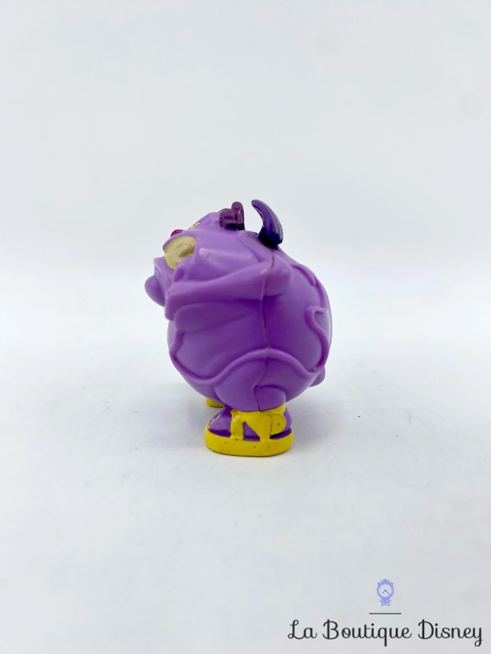 Figurine en plastique de Peine, le petit monstre ami de Panique qui assiste Hadès le dieu des Enfers dans ses machinations. Ce démon est violet mauve, un peu gros, possède deux cornes violettes et porte des chaussures jaunes.