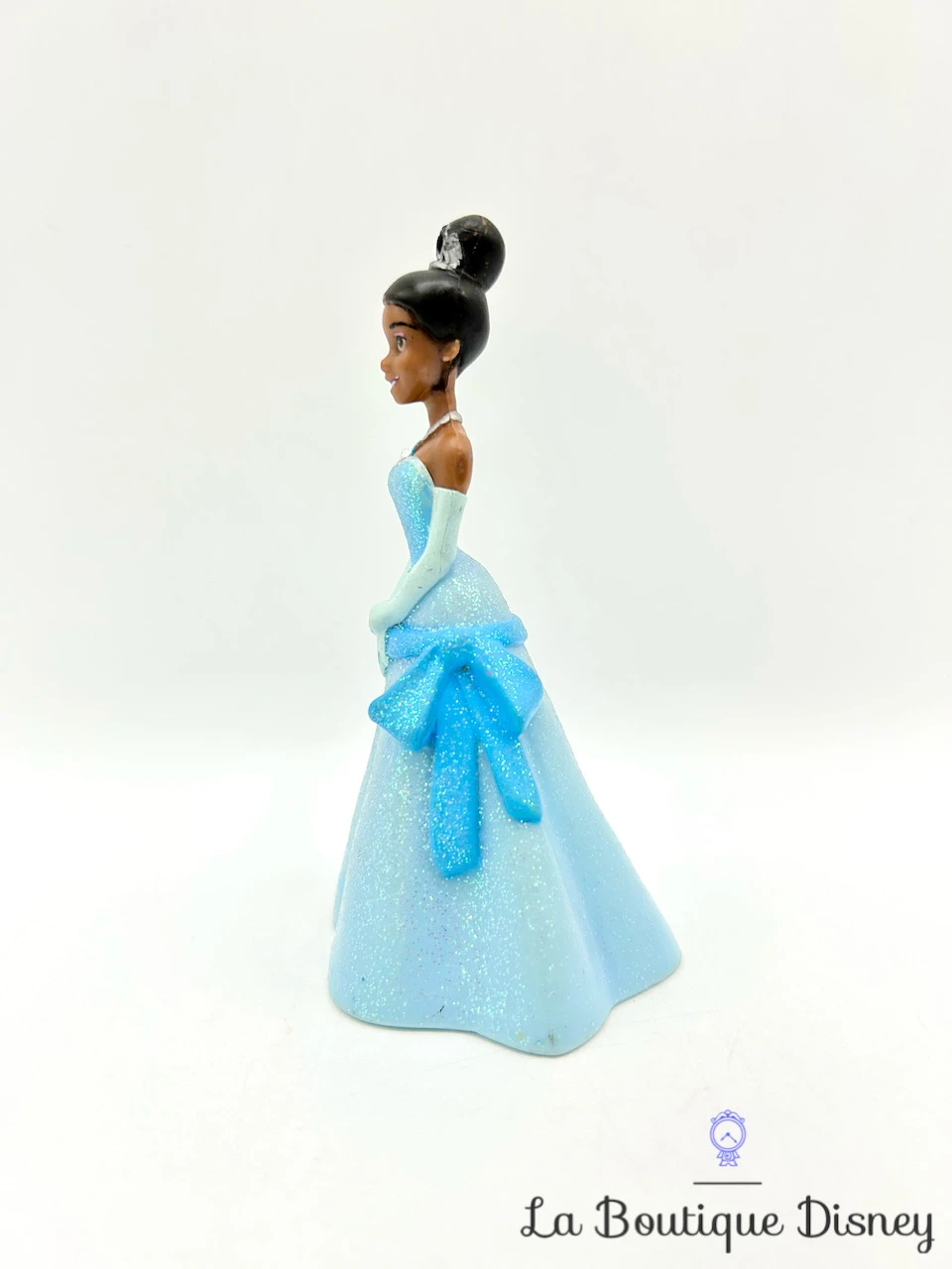 Figurine en plastique de la célÚbre princesse Tiana. Elle porte une magnifique robe de bal bleue à paillettes.