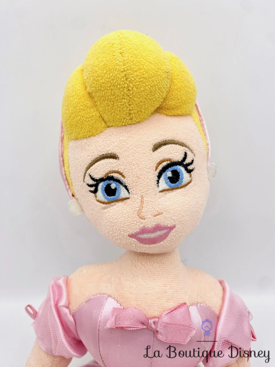 Poupée chiffon de la princesse Cendrillon avec le visage brodé et les yeux bleus. Cendrillon porte une robe rose avec des petits noeuds assortis que ses amis les petites souris lui ont confectionnés pour se rendre au bal. La robe est moitié satin / moitié velours. Elle a également un bandeau rose dans ses cheveux blonds. Écusson en bas de la robe Disney Store Exclusive. Peluche indispensable à la superbe collection de poupées chiffons proposée dans notre site (autres princesses disponibles à la vente) !