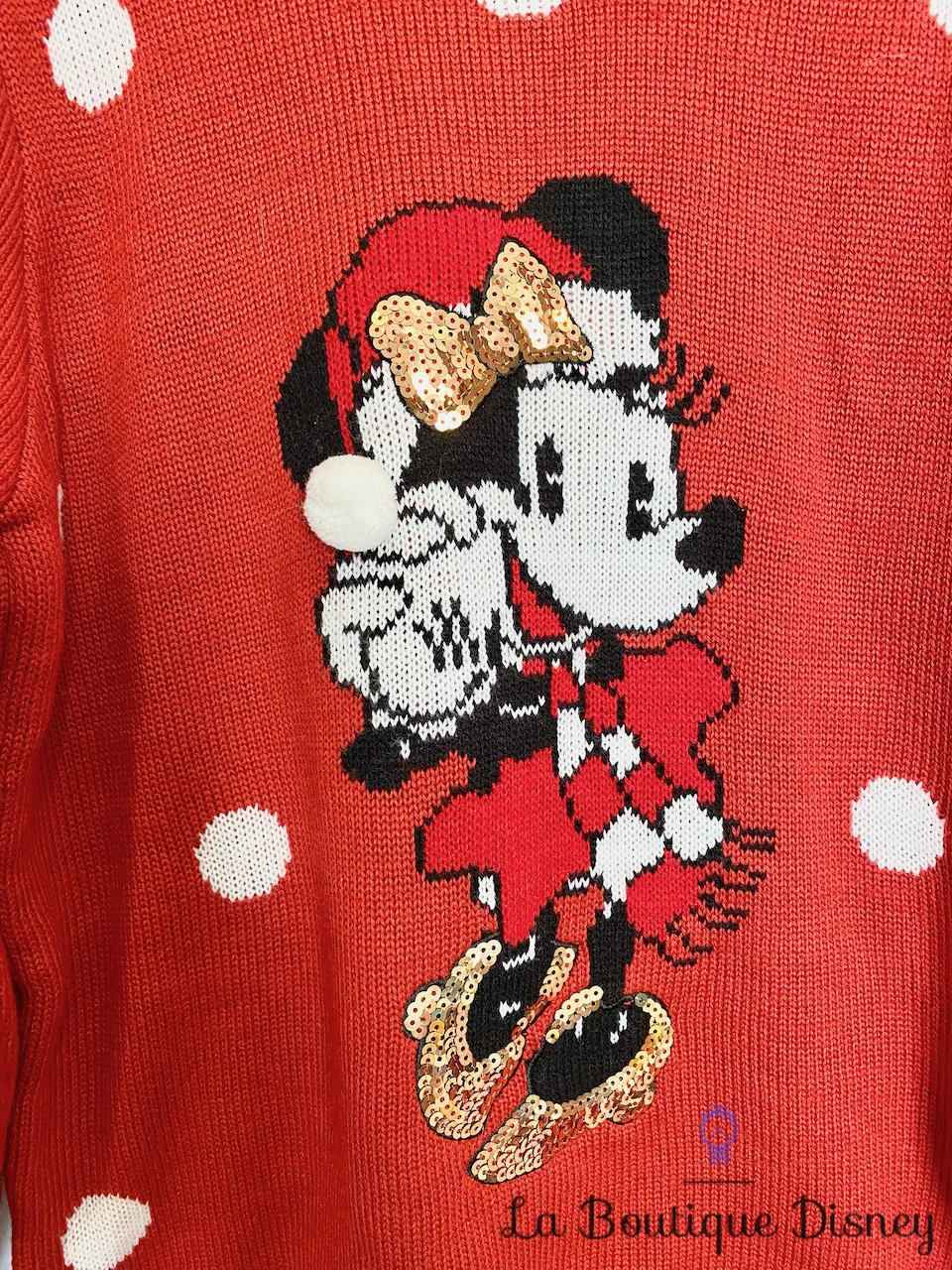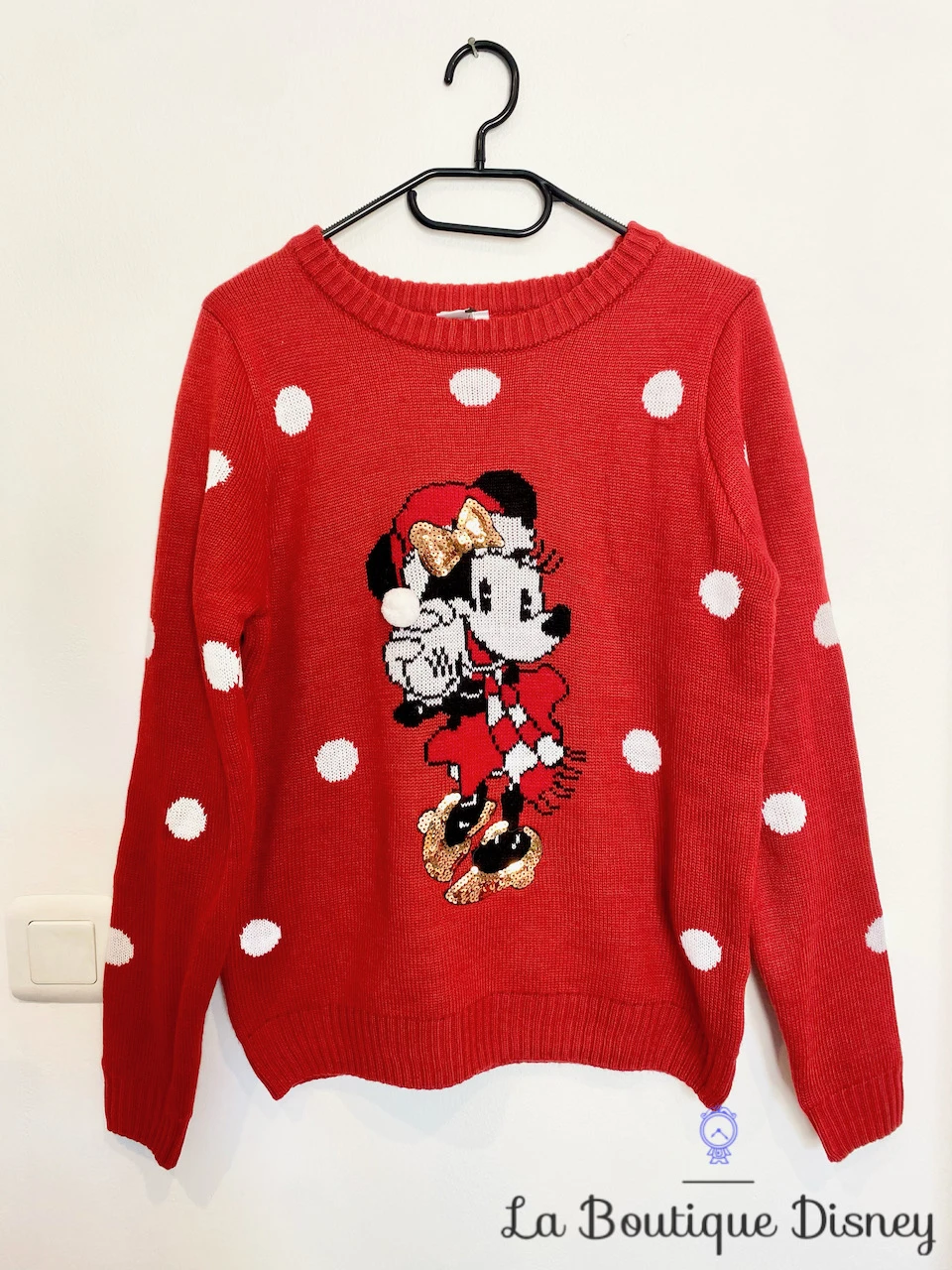 Pull Noël Minnie Mouse Disney Cache Cache Taille M Rouge Pois