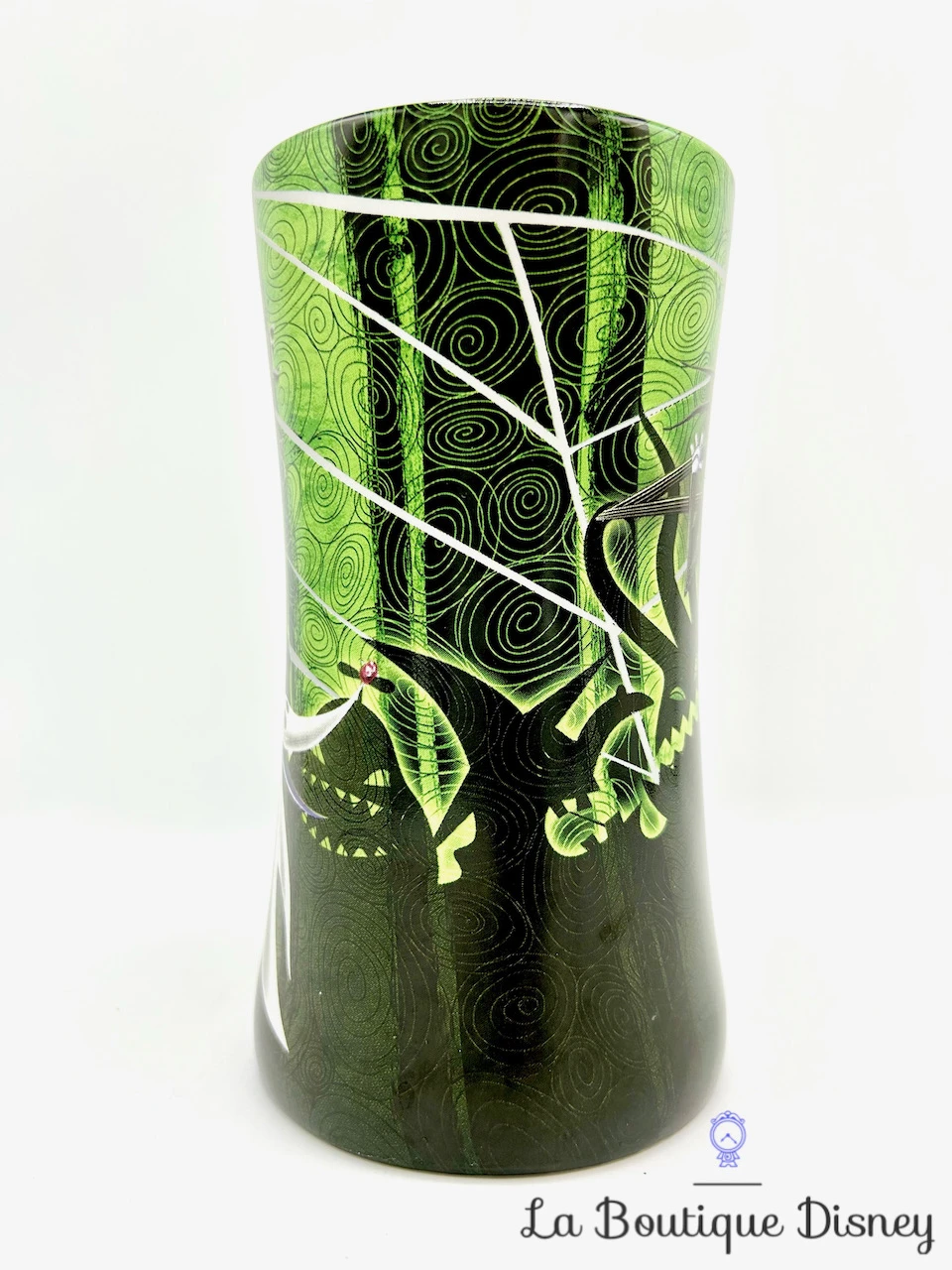 Mug en céramique noir sur fond de dessins verts. Sur une face, le squelette épouventail de la ville d’Halloween, Jack Skellington est représenté debout les bras croisés. Avec ses grands yeux noirs et son magnifique sourire, il a tout pour vous séduire ! De l’autre côté du mug, Zéro le chien fantôme vole. Il aime sortir de sa tombe pour jouer avec son os et Jack. Au dessus de lui, inscription en blanc en majuscules d’imprimerie « Tim Burton’s The Nightmare Before Christmas ». Anse et intérieur noirs. Mug grande capacité.