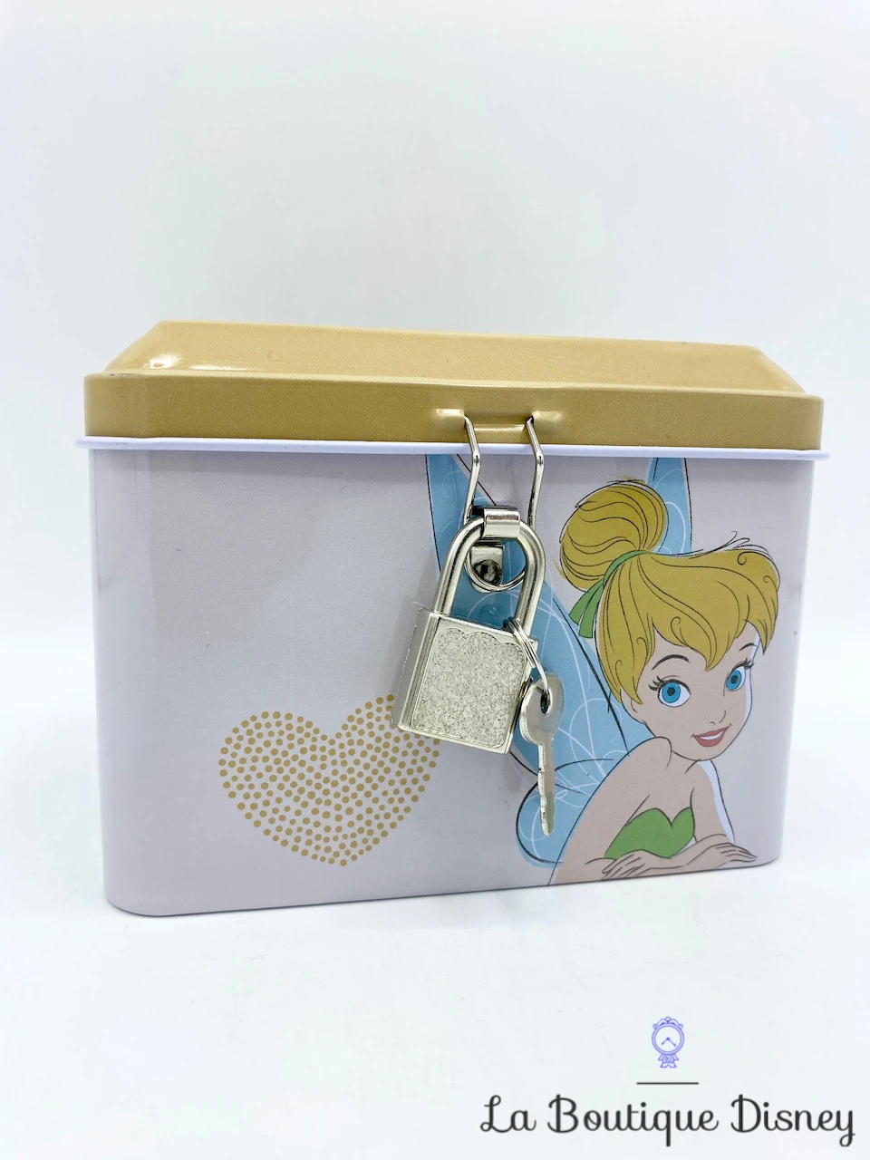 Tirelire Métal Fée Clochette Disney WO Products Peter Pan Tinker Bell Boite Coffre Rose Cadenas